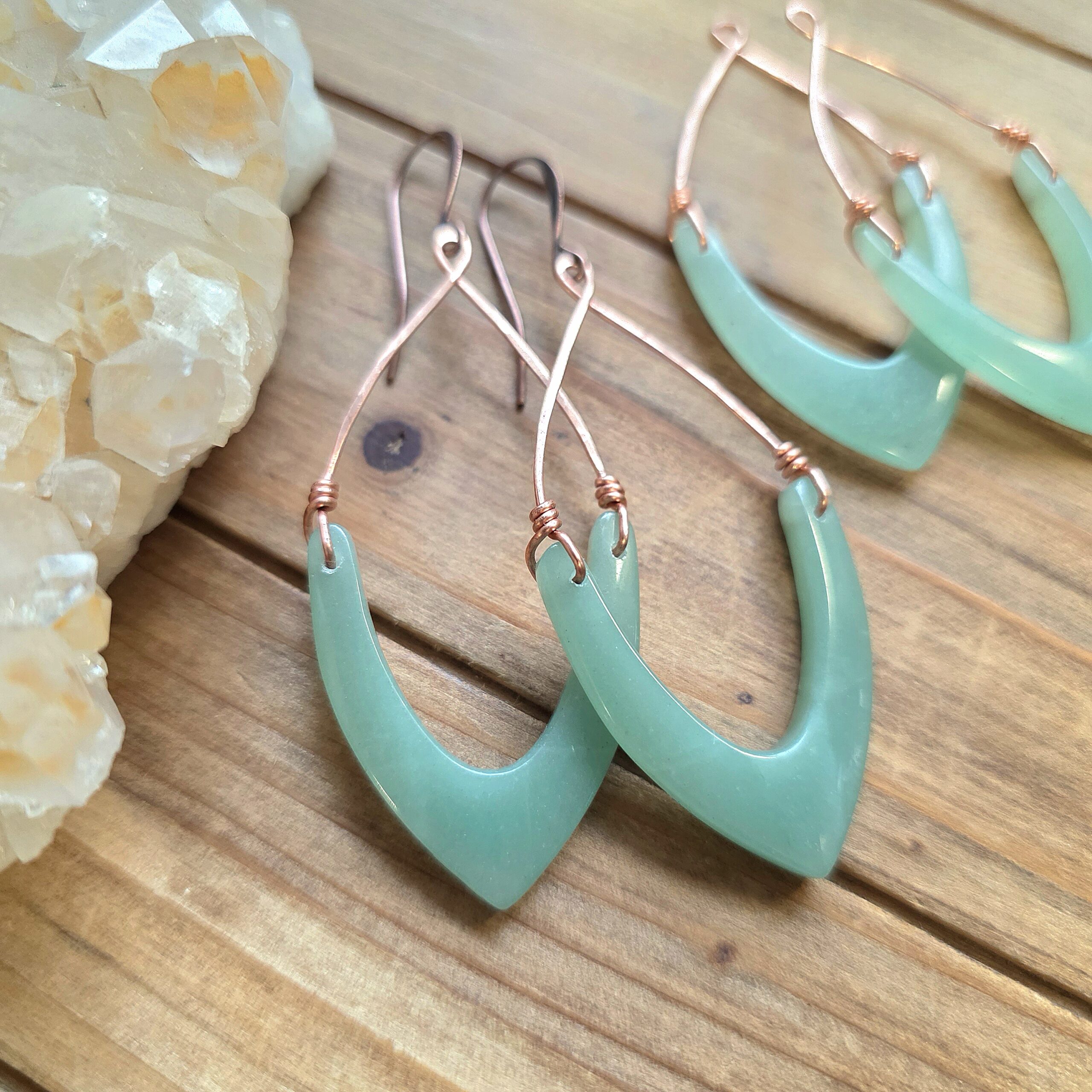 This is the pair of earrings that is sure to go with every outfit you own. These are made from hand-forged copper with Green Aventurine.