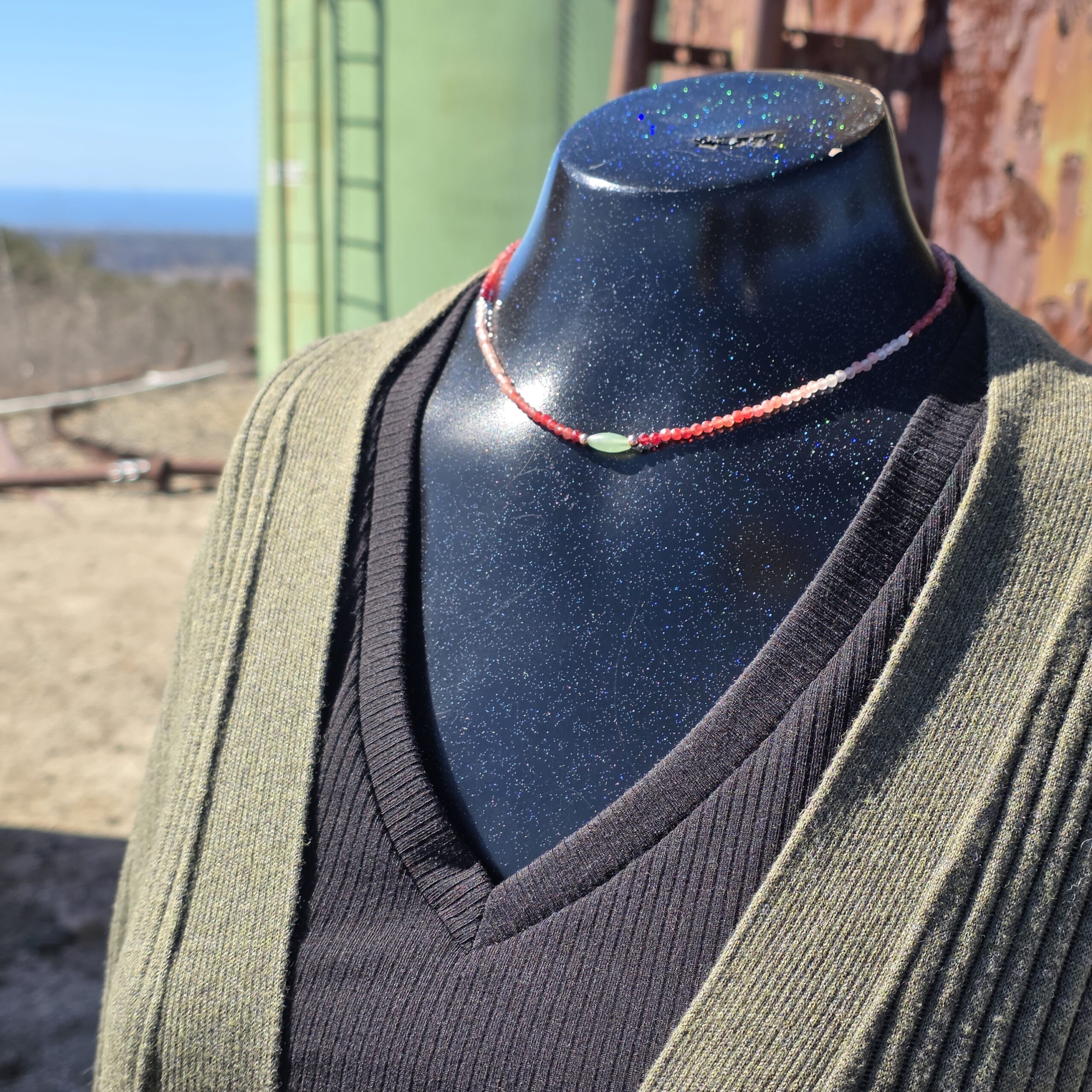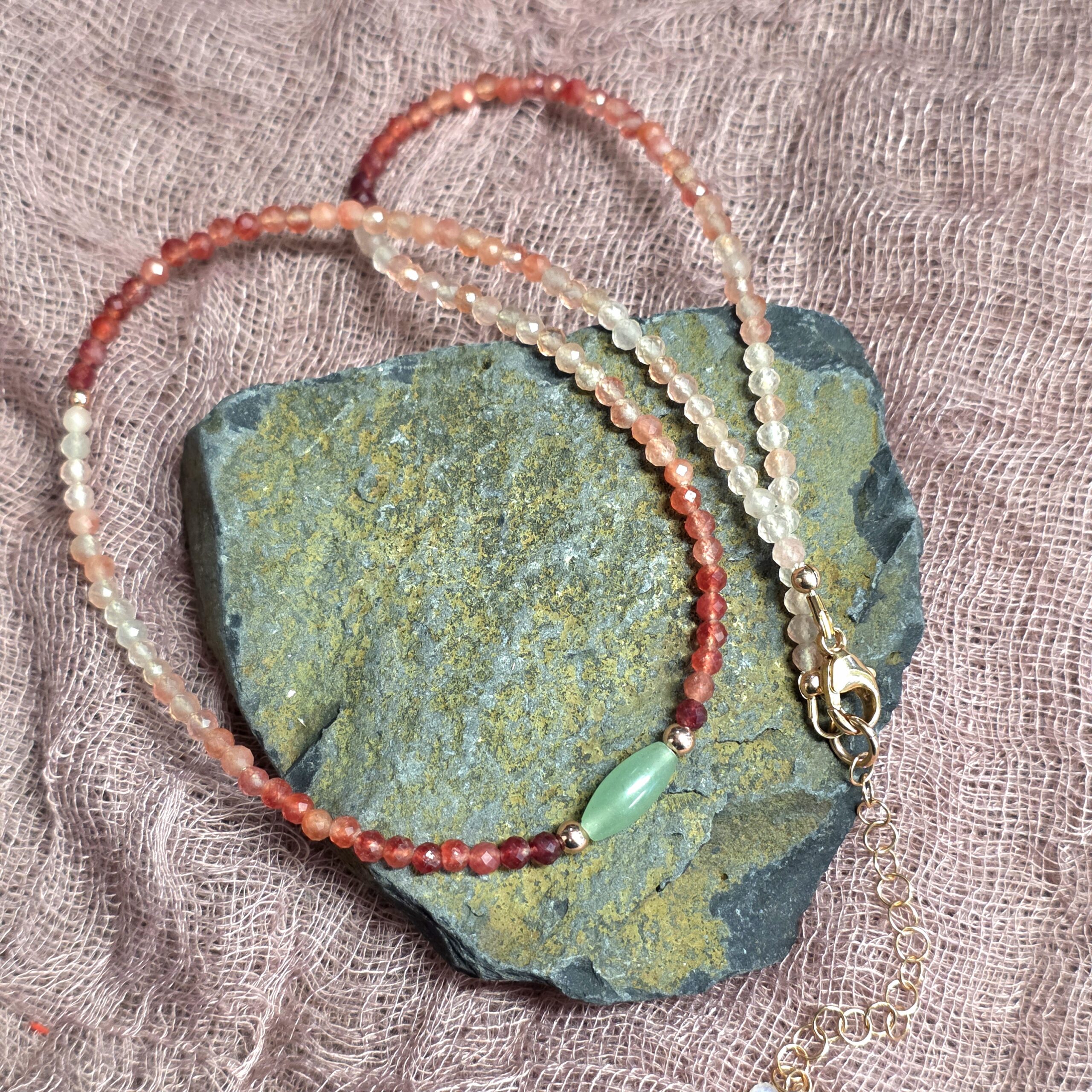 - Beaded necklace with Strawberry Quartz and Green Aventurine